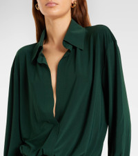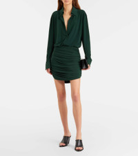 Norma Kamali's playful approach to design has taken the world by storm since the 1960s. Rendered in an emerald green hue, this minidress features a voluminous, shirt-inspired bodice with a gathered skirt. Product Details - Material: 95% polyester, 5% elastane - Care instructions: machine wash cold - Made in China - Color: green - Designer color name: Dark Emerald - Item color: green - Collar: classic (Straight point) - Closure: VELCRO® fastening - Item number: P01127751 Size & Fit - True to size - Dropped shoulders - Loose bodice, fitted skirt - Stretchy fabric - The model seen in the picture is 178cm-5'10" and wearing a size XS