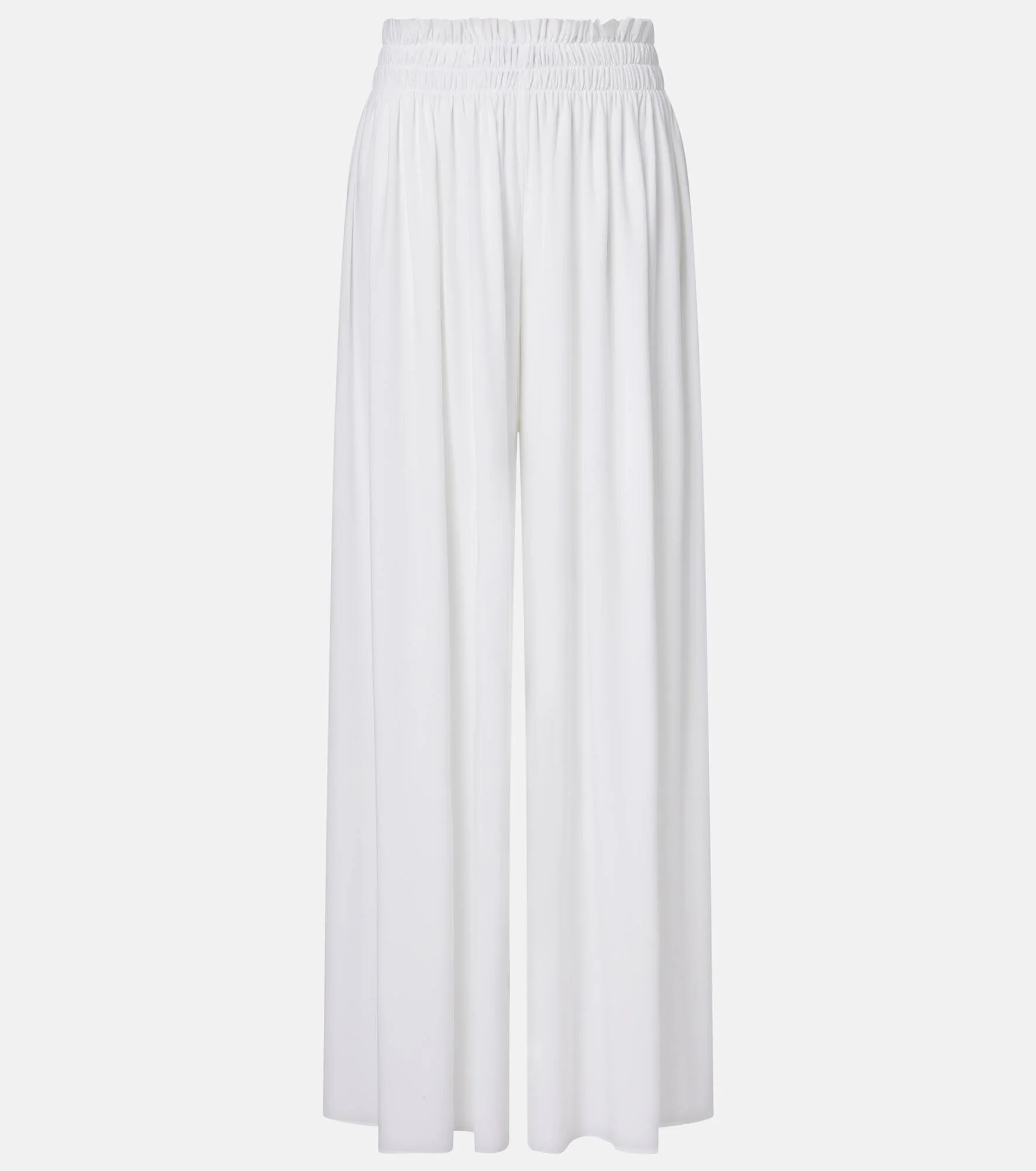 Award-winning designer Norma Kamali's playful approach to design has taken the world by storm since the 1960s. These pants are tailored to a wide-leg silhouette and boast an elasticated waistband that creates a gathered effect. Product Details - Material: 95% polyester, 5% elastane - Care instructions: machine wash cold - Made in China - Color: white - Designer color name: Snow White - Elasticated waistband - Item number: P01161832 Size & Fit - Fits large to size - we recommend trying one size smaller - Elasticated waist - Stretchy fabric - Wide-leg - The model seen in the picture is 178cm-5'10" and wearing a size XXS