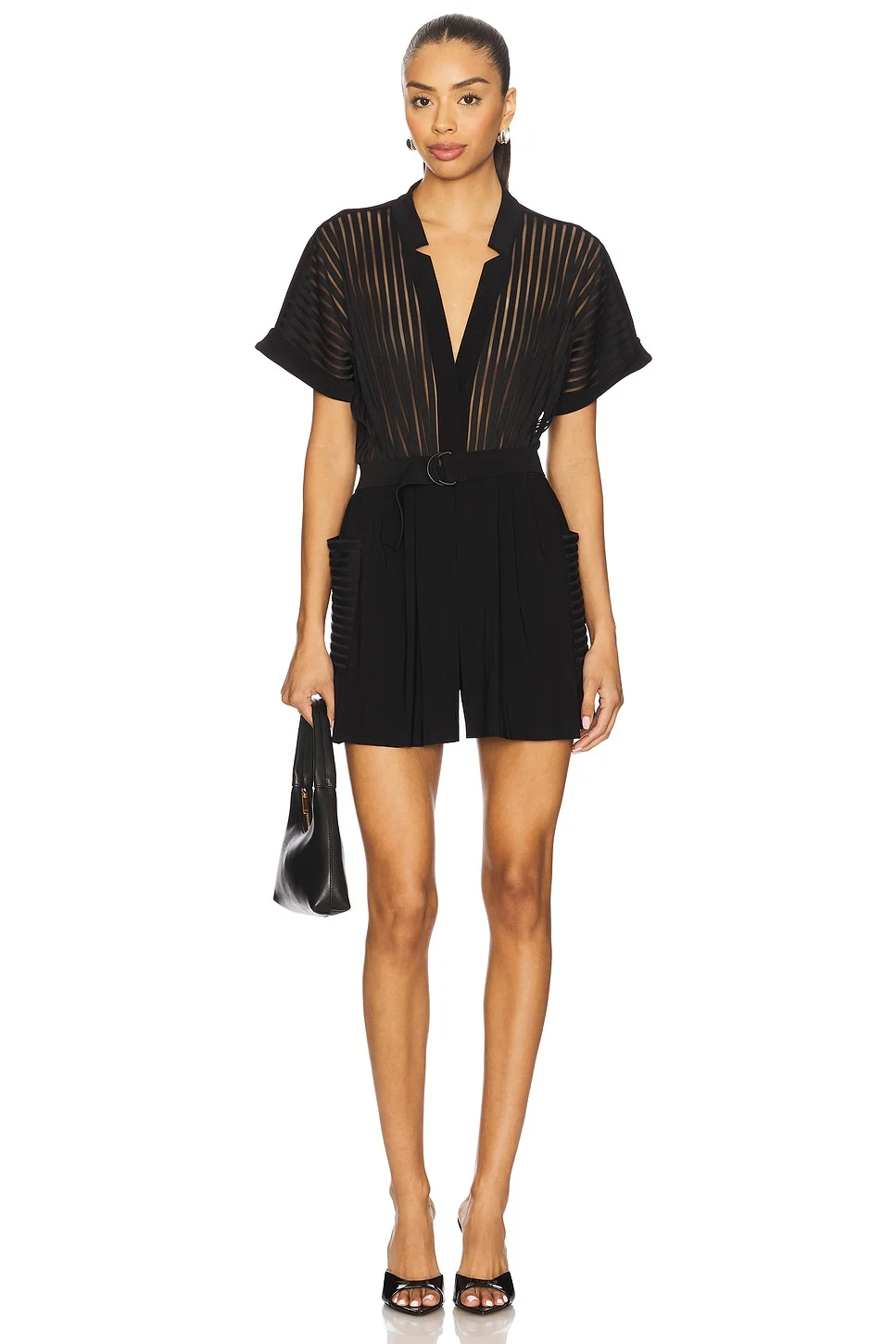 - Self: 95% polyester 5% spandex Contrast Fabric: 100% polyester - Machine wash cold - Pull-on styling with velcro fastening at front - Detachable D-ring belt - Side pockets - Midweight jersey fabric with mesh contrast - Garment is intentionally sheer, undergarments will show through - Please note undergarment not included - style runs large, size down - Revolve Style No. NKAM-WR47 - Manufacturer Style No. KK225JLSQ44001