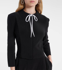 Award-winning designer Norma Kamali's playful approach to design has taken the world by storm since the 1960s. The waist-length Girl jacket features a slim fit, complemented by a rounded collar, removable white self-tie, and zipper closure. Product Details - Material: 95% polyester, 5% elastane - Care instructions: machine wash at 30 degrees - Made in China - Designer color name: Black - Item color: black - Item number: P01063780 Size & Fit - True to size - Cinched waist - Stretchy fabric - Slightly cropped - The model seen in the picture is 178cm-5'10" and wearing a size XS