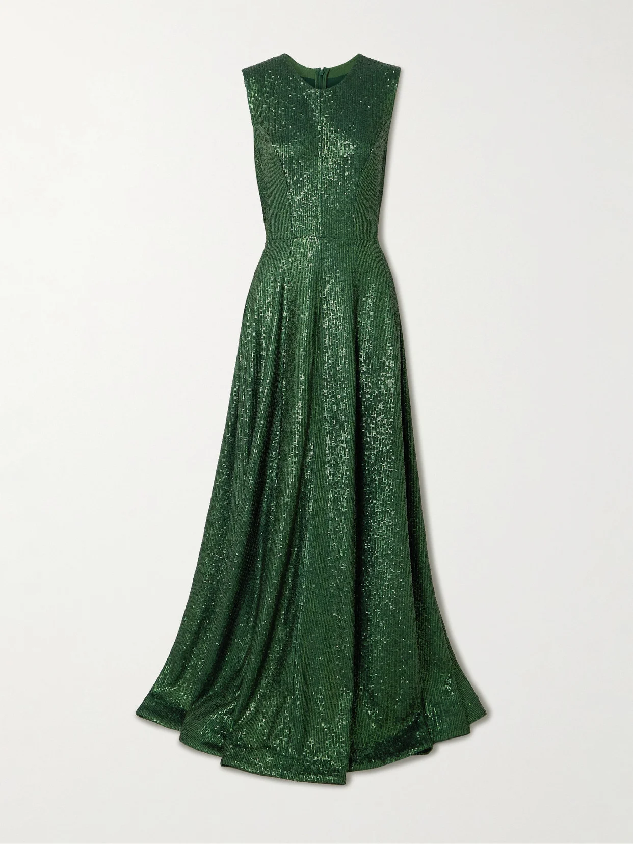 You'll be a vision of 'Grace' in Norma Kamali's gown. It's cut from stretch-jersey in a swishy fit-and-flare silhouette and is showered with light-catching emerald sequins. Wear yours with opera gloves and a minaudiere clutch.