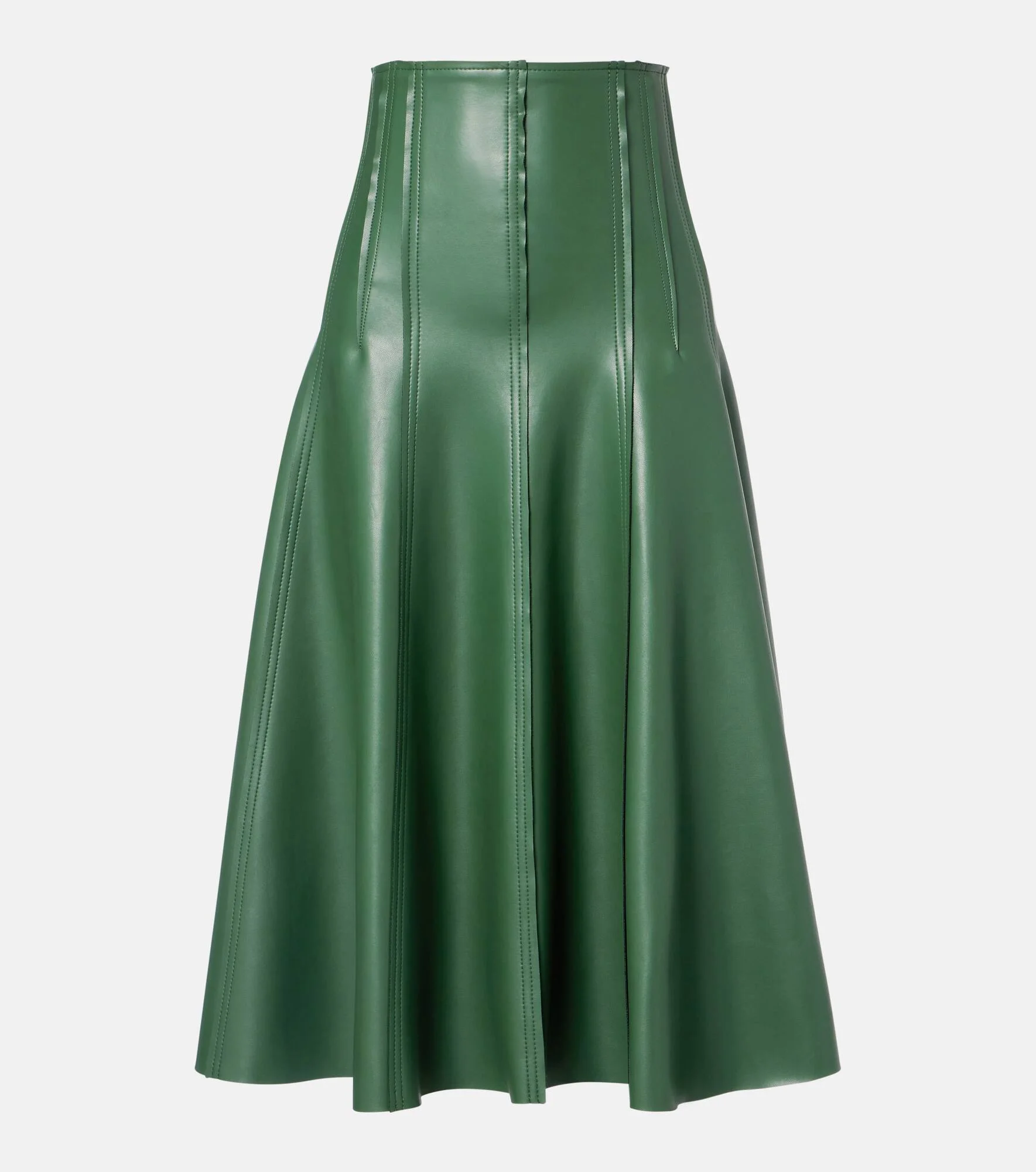 Award-winning designer Norma Kamali's playful approach to design has taken the world by storm since the 1960s. The Grace midi skirt is a high-rise, flared design with careful pleating at the waist and tonal stitching. Product Details - Material: 95% polyester, 5% elastane - Care instructions: machine wash cold - Made in China - Color: green - Designer color name: Dark Emerald - Item color: green - Coating: 100% polyurethane - Material II: 95% polyester, 5% elastane - Closure: concealed zipped back - Item number: P01127758 Size & Fit - True to size - Slightly stretchy fabric - High-waisted - The model seen in the picture is 178cm-5'10" and wearing a size XS
