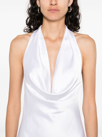 halter drape gown Highlights - White - Cowl neck - Racerback - Sleeveless Imported Composition Polyester 100% SIZE & FIT Model measurements Height 5 ft 10 in(1.79 m) Bust/Chest 33.07 in(84 cm) Hips 35.82 in(91 cm) Waist 24.01 in(61 cm) FittingInformation Designed for a slim fit that sits just away from the body offering a close yet comfortable fit Made from a midweight non-stretch fabric Washing instructions Hand Wash