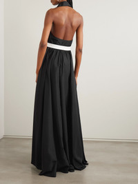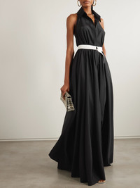 Unexpected utilitarian elements give Norma Kamali's incredibly chic gown a cool twist. Designed with concealed VELCRO® fastenings and a contrasting D-ring belt, it's made from lustrous habotai that holds a beautiful shape through the full skirt. The collared halter neckline keeps it looking smart. Size & Fit - Fits true to size, take your normal size - Designed for a slightly loose fit, use the tie belt to cinch in at the waist - Elasticated at the waist for a comfortable fit - Long in length, may wish to alter - Mid-weight, non-stretchy fabric - Model is 180cm/ 5'11" and is wearing a size XSmall Model measurements: - Bust: 80cm/ 31.5" - Waist: 65cm/ 25.5" - Hip: 89cm/ 35" Details & Care - Black habotai - Concealed VELCRO® fastenings through front - 100% polyester - Machine wash