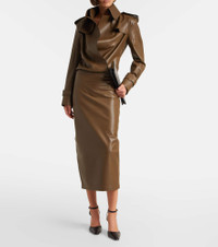 Award-winning designer Norma Kamali's playful approach to design has taken the world by storm since the 1960s. This midi skirt boasts a high-rise waist and a classic, 5-pocket silhouette. Product Details - Material: 100% polyurethane - Care instructions: hand wash - Made in China - Designer color name: Bark - Item color: green - Material II: 95% polyester, 5% elastane - Closure: invisible zipper - Short vent - Item number: P01098477 Size & Fit - True to size - Slightly stretchy fabric - High-waisted - slit length 29cm-11.5" - The model seen in the picture is 178cm-5'10" and wearing a size XS