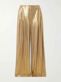 Pleated stretch-lamé wide-leg pants Gold