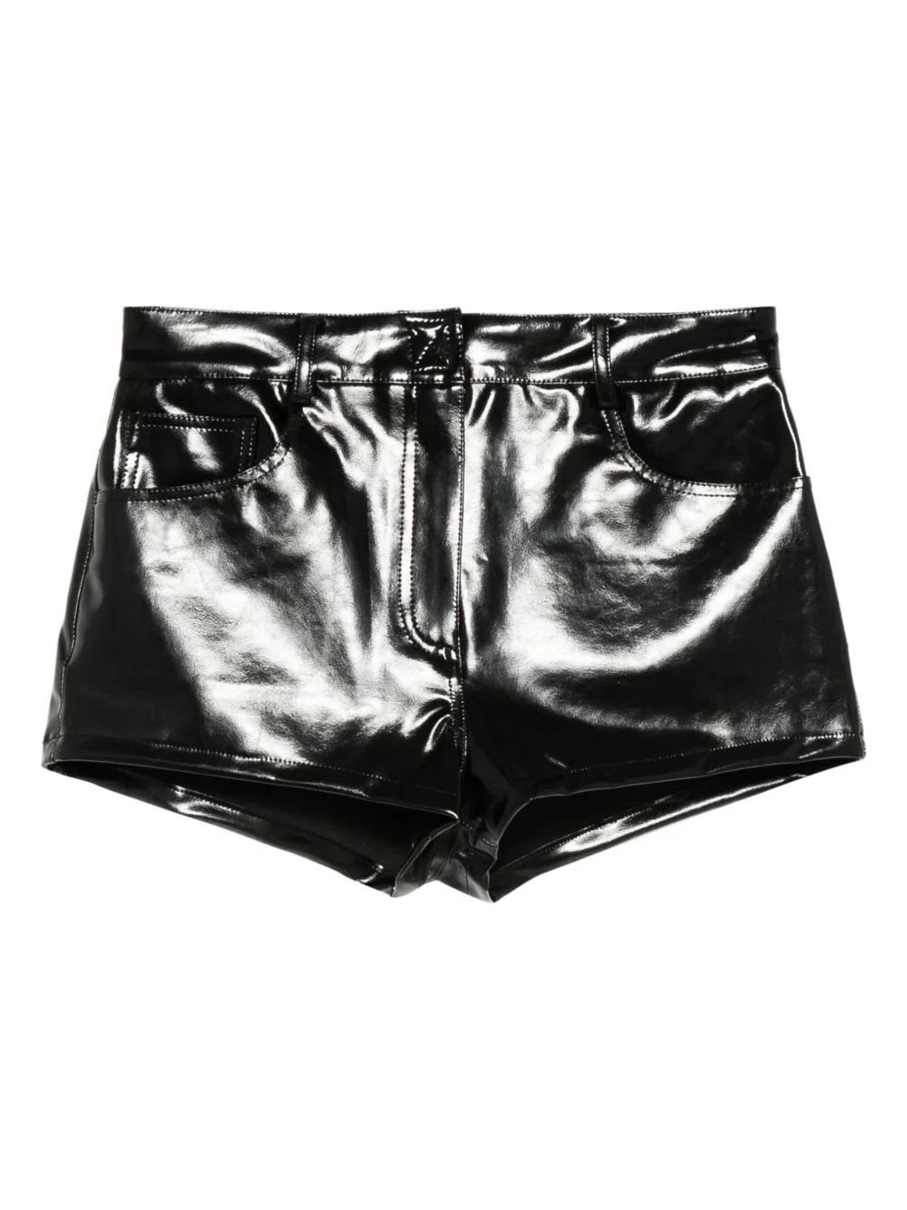 shine-finish shorts Highlights Imported Composition Polyurethane 100%, Polyester 92%, Spandex/Elastane 8% SIZE & FIT Model measurements Height 5 ft 9 in(1.75 m) Bust/Chest 32.67 in(83 cm) Hips 36.22 in(92 cm) Waist 24.8 in(63 cm)