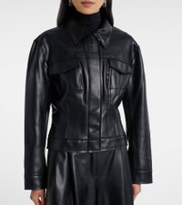 The Jeans jacket by Norma Kamali is a versatile staple that’s both stylish and effortlessly wearable. This style features a classic point collar, flap chest pockets, and a zip closure. Product Details - Material: 100% polyurethane - Care instructions: hand wash cold - Made in China - Designer color name: Black - Item color: black - Material II: 95% polyester, 5% elastane - Material III: 95% polyester, 5% elastane - Collar: classic (Straight point) - Pockets: flap chest pockets - Closure: concealed zipped front, VELCRO® fastenings - Item number: P01112344 Size & Fit - True to size - Cinched waist - Stretchy fabric - Falls to the hip - The model seen in the picture is 178cm-5'10" and wearing a size XS