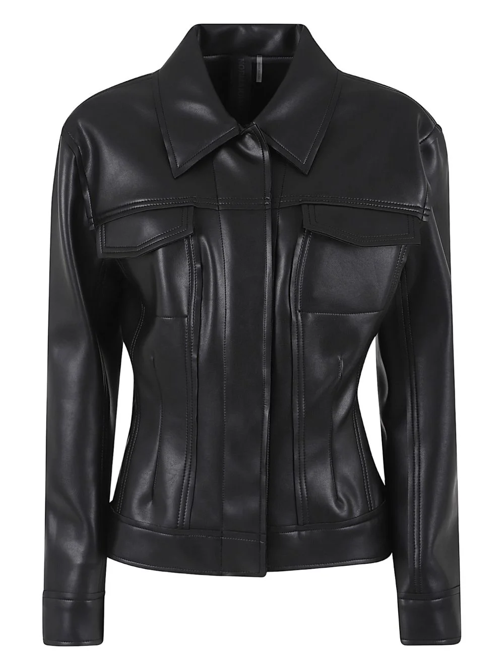 faux-leather jacket Highlights - Black - Classic collar - Concealed front fastening - Long sleeves - Two chest flap pockets - Panelled design Imported Composition Polyurethane 100% Washing instructions Read Manufacturer Guidelines