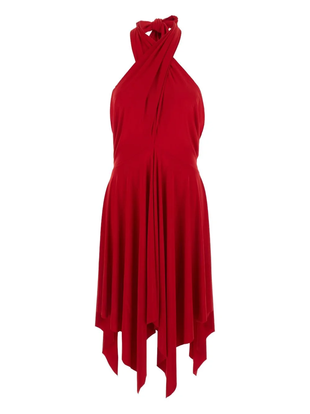 knotted halterneck dress Highlights - Red - Draped design - Asymmetric hem - Tie detail - Open back Imported Composition Polyester 95%, Spandex/Elastane 5% Washing instructions Machine Wash