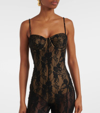Product Details - Material: 81% nylon, 19% elastane - Care instructions: machine wash cold - Made in China - Designer color name: Black Stretch Lace/Nu - Lining: 72% nylon, 28% elastane - Item number: P01029048 Size & Fit - Fits small to size - we recommend trying one size larger - Internal laced corset for support - Fitted - Stretchy fabric - Slim-leg with a flared hem - High-cut leg - The model seen in the picture is 178cm-5'10" and wearing a size S