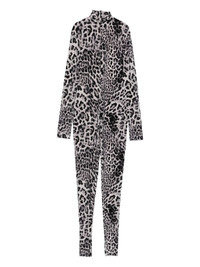 leopard-print turtleneck jumpsuit Highlights - Grey - Leopard print - Turtleneck - Long sleeves - Full-length legs Imported Composition Polyester 95%, Spandex/Elastane 5% SIZE & FIT Model measurements Height 5 ft 9 in(1.75 m) Bust/Chest 32.67 in(83 cm) Hips 36.22 in(92 cm) Waist 24.8 in(63 cm) Washing instructions Machine Wash