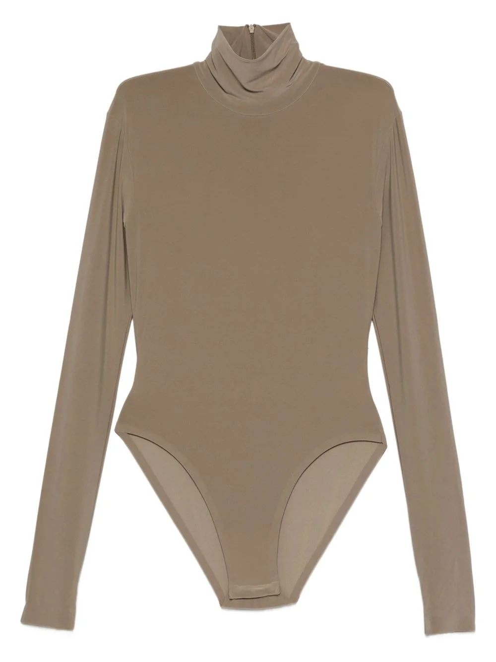 long-sleeve bodysuit Highlights - Brown - High neck - Long sleeves - Just a reminder that this piece must be tried on over your own garments. Imported Composition Polyester 95%, Spandex/Elastane 5% SIZE & FIT Model measurements Height 5 ft 10 in(1.78 m) Bust/Chest 33.46 in(85 cm) Hips 36.22 in(92 cm) Waist 23.22 in(59 cm) Washing instructions Dry Clean Only