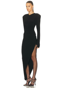 Long Sleeve Shoulder Pad V Neck Side Drape Gown