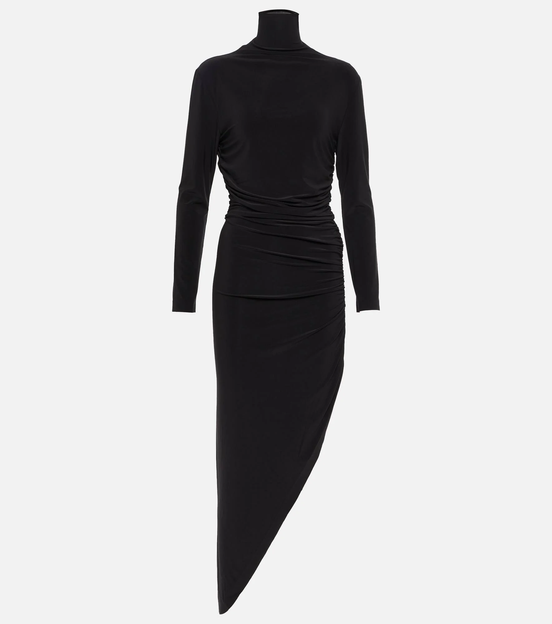 Norma Kamali’s signature ruched construction allows silhouettes to drape elegantly across the figure. This maxi dress is made from stretchy jersey with a turtleneck and an asymmetrical hem. Product Details - Material: 95% polyester, 5% elastane - Care instructions: hand wash - Made in China - Item number: P00826088 Size & Fit - True to size - Fitted - Mid-weight material - Stretchy fabric - The model seen in the picture is 178cm-5'10" and wearing a size XS