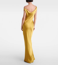 Award-winning designer Norma Kamali's playful approach to design has taken the world by storm since the 1960s. The Maria gown is crafted from crepe satin and complete with an asymmetric neckline. Product Details - Material: 100% polyester - Care instructions: hand wash - Made in China - Designer color name: Asparagus - Item color: green - Closure: concealed zipper - Item number: P01054073 Size & Fit - True to size - Cinched waist - Non-stretchy fabric - The model seen in the picture is 178cm-5'10" and wearing a size XS