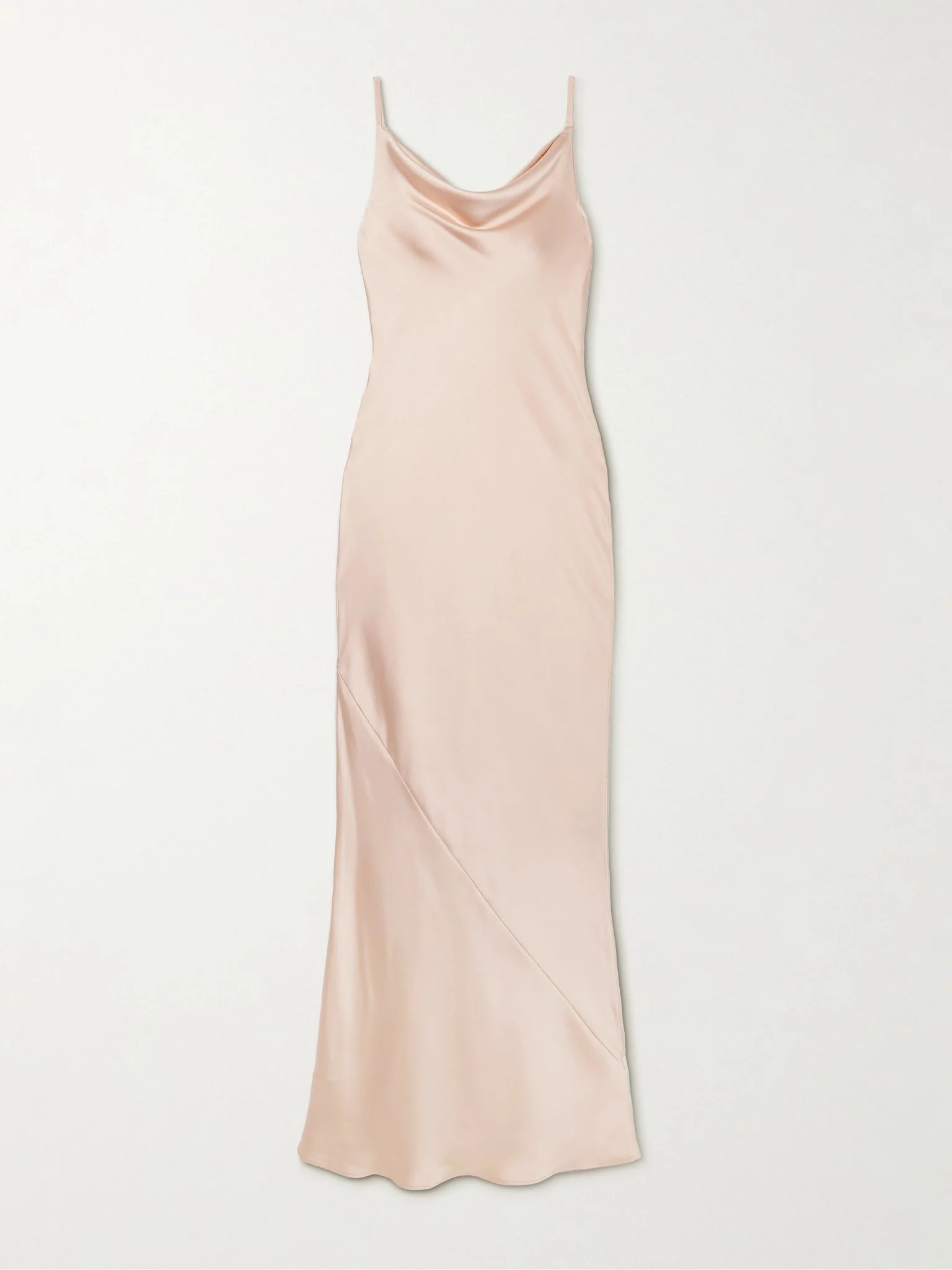 Norma Kamali's 'Maria' dress recalls old Hollywood glamour with its elegant, bias-cut design. It's made from slinky satin that gently skims your figure and has a draping cowl neckline that's mirrored at the back. Keep styling simple with metallic heels and diamond jewelry. Size & Fit - Fits true to size, take your normal size - Cut for a slim fit - Mid-weight, non-stretchy fabric - Model is 177cm/ 5'10" and is wearing a size X Small Model measurements: - Bust: 85cm/ 33” - Waist: 66cm/ 26” - Hip: 92cm/ 36” Details & Care - Blush satin - Slips on - 100% polyester - Hand wash - Designer color: Baby