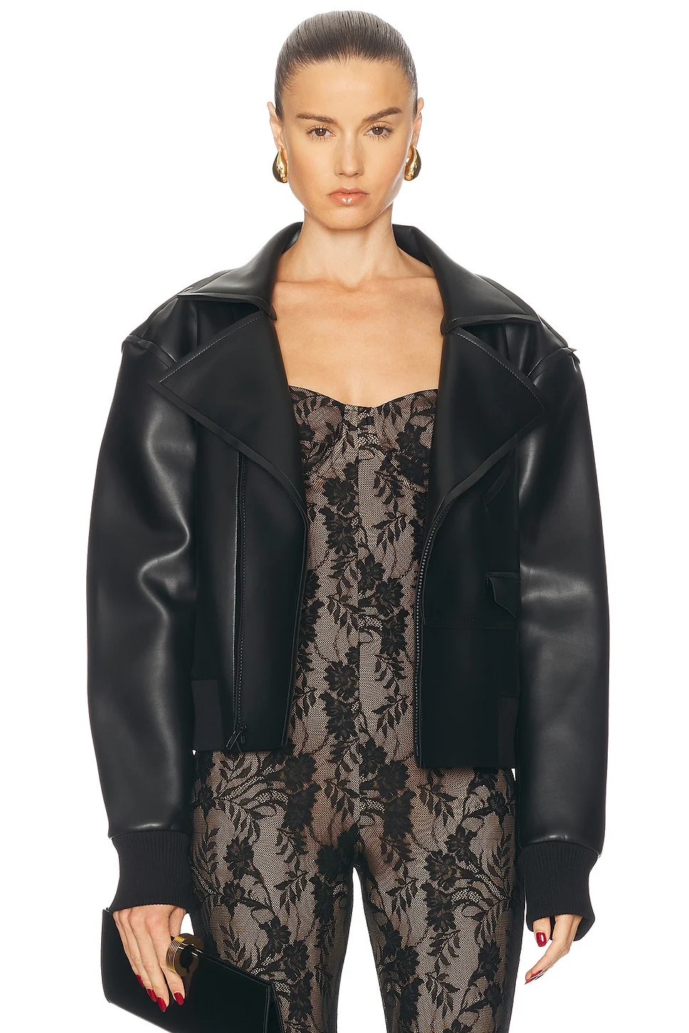 Details - Self 1: 100% polyurethane - Self 2: 92% polyester, 8% spandex - Self 3: 95% polyester, 5% spandex - Made in China - Machine wash - Hidden front zipper closure - 3-front zipper pockets - Front flap pocket - Faux leather fabric with ribbed knit trim - style runs large, size down - Our Style No. NOMF-WO86 - Manufacturer Style No. ST1254LVD27001