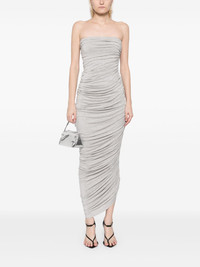 Diana midi dress Highlights - Light grey - Stretch-design - Lame effect - Strapless - Ruched detailing - Mid-calf length - Partial lining - Pull-on style Imported Composition Viscose 95%, Spandex/Elastane 5% SIZE & FIT Model measurements Height 5 ft 9 in(1.76 m) Bust/Chest 31.1 in(79 cm) Hips 35.03 in(89 cm) Waist 24.4 in(62 cm) Measurement HIPS 35.43 in(90 cm) LENGTH 39.76 in(101 cm) WAIST 25.98 in(66 cm) FittingInformation Designed for a slim fit that sits just away from the body offering a close yet comfortable fit Made from a midweight stretch fabric, this piece offers elasticity and flexibility when worn Washing instructions Machine Wash