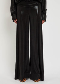 Info & Care Norma Kamali stretch-jersey trousers Elasticated waistband, pearlescent finish Pull on 95% polyester, 5%;elastane Hand wash Coordinating items available Size & Fit Inside leg length: 36 inches/ 91.5cm Midweight Wide-leg cut, designed to sit high on the waist Model is 5'9"/ 175cm and wears a size small