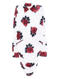 shirt shirred bottom mini dress Highlights - White - Floral print - Elasticated side panels Imported Composition Polyester 95%, Spandex/Elastane 5% SIZE & FIT Model measurements Height 5 ft 10 in(1.77 m) Bust/Chest 30.31 in(77 cm) Hips 34.25 in(87 cm) Waist 25.19 in(64 cm) FittingInformation Designed for a loose fit at the chest and waist with a close fit at the hips Made from a midweight stretch fabric, this piece offers elasticity and flexibility when worn Washing instructions Machine Wash
