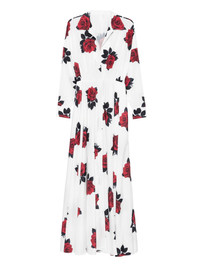 rose-print maxi dress Highlights - White - Rose print - Spread collar - Long sleeves - Button front fastening - Pleated skirt Imported Composition Polyester 100% SIZE & FIT Model measurements Height 5 ft 9 in(1.75 m) Bust/Chest 32.67 in(83 cm) Hips 36.22 in(92 cm) Waist 24.8 in(63 cm) Washing instructions Machine Wash