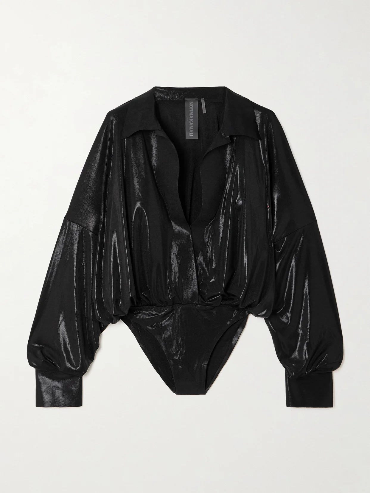 Norma Kamali's design philosophy has remained the same since the '70s - to help women feel the most confident version of themselves. In that spirit, this 'Super' bodysuit is cut from dainty lace and has a comfortable stretch-jersey base. The oversized profile and open shirt collar exude effortless elegance.
