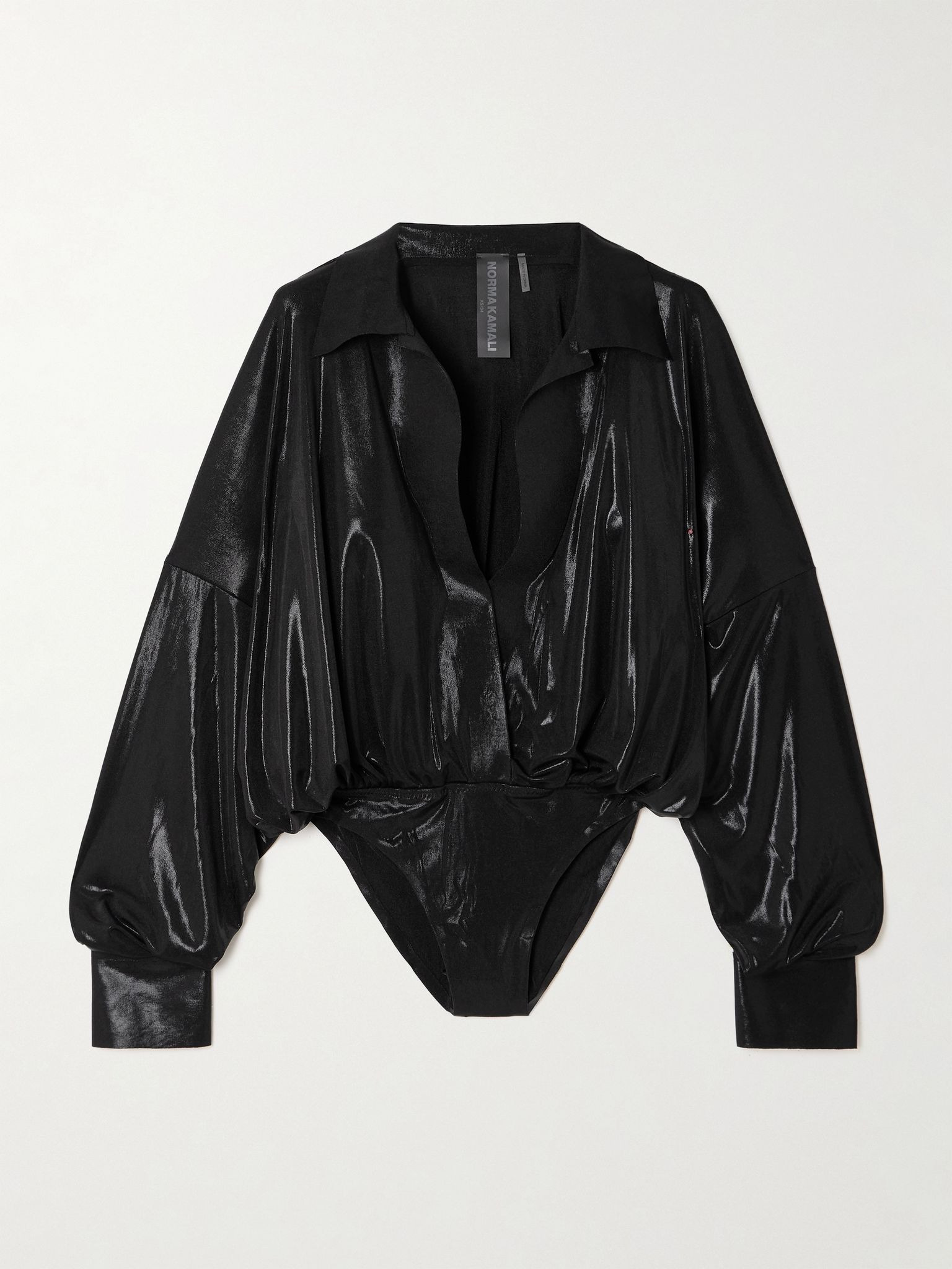 Norma Kamali's design philosophy has remained the same since the '70s - to help women feel the most confident version of themselves. In that spirit, this 'Super' bodysuit is cut from dainty lace and has a comfortable stretch-jersey base. The oversized profile and open shirt collar exude effortless elegance. Size & Fit - Fits true to size, take your normal size - Those with a long torso may wish to take the next size up - Cut for a slightly loose fit - Medium brief coverage - Lightweight, stretchy fabric - Model is 180cm/ 5'11" and is wearing a size XSmall Model measurements: - Bust: 80cm/ 31.5" - Waist: 65cm/ 25.5" - Hip: 89cm/ 35" Details & Care - Black lace and stretch-jersey - Concealed VELCRO® fastenings at front - Fabric1: 100% polyester; fabric2: 95% polyester, 5% spandex - Machine wash