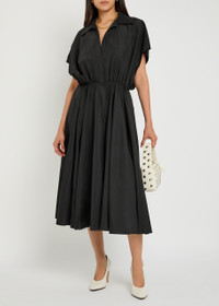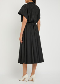 Info & Care Norma Kamali shell dress Camp collar, low V-neck, dolman sleeves, gathered details, elasticated waistband, two concealed side slip pockets Concealed Velcro fastenings through front 100% polyester Dry clean Size & Fit Length shoulder to hem: 50 inches/ 127cm Midweight Flared style, slim at waist Model is 5'10"/ 178cm and wears a size small;