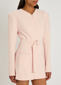 Info & Care Norma Kamali stretch-jersey jacket Padded shoulders, darted, slit pockets at;back Comes with a belt Zip fastening through front 95% polyester, 5% spandex Cold wash Size & Fit Length shoulder to hem: 30 inches/ 76cm Midweight Regular fit, tapered at waist Model is 5'10"/ 178cm and wears a size small;