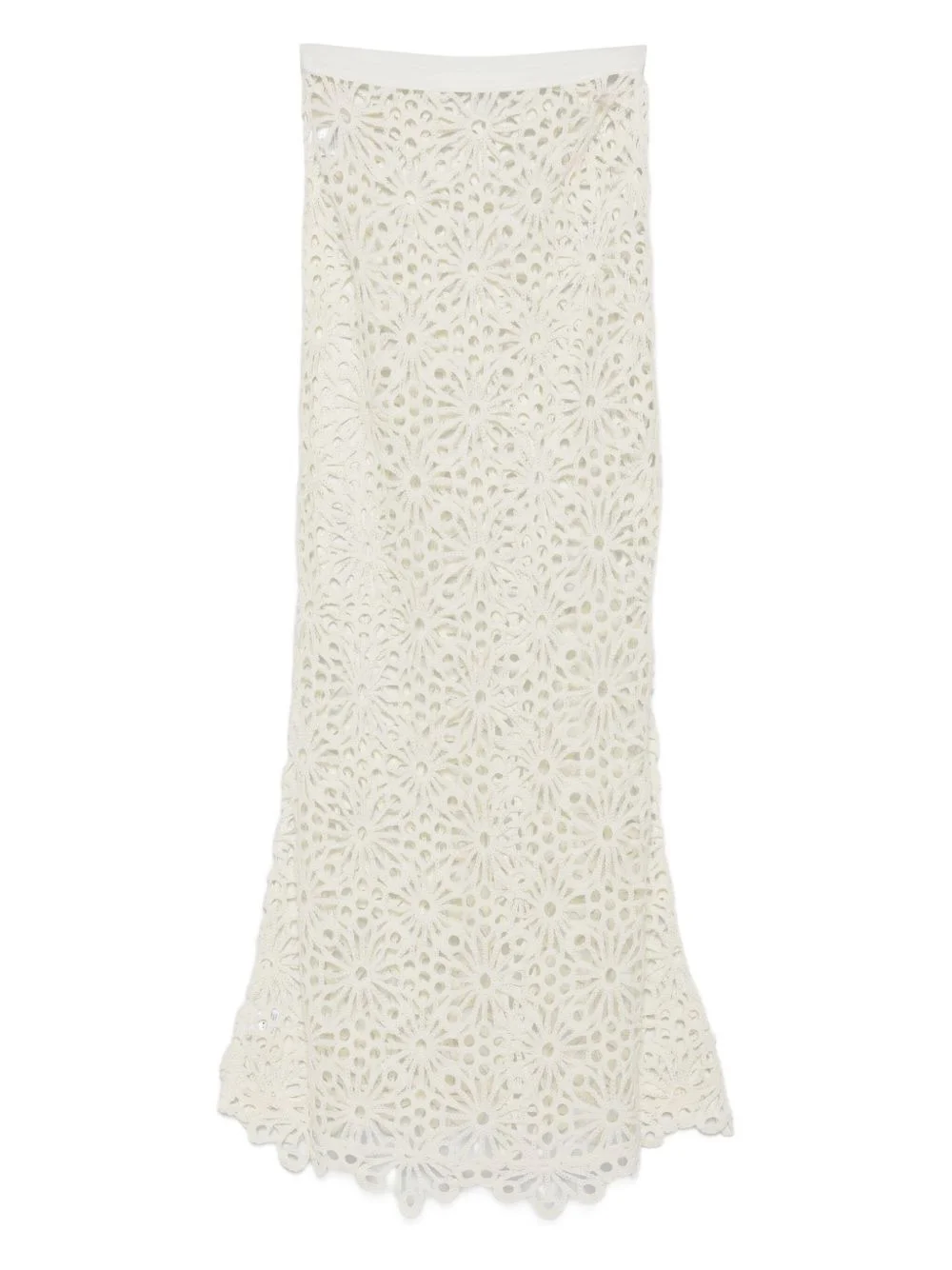 Obie floral-lace maxi skirt Highlights - Cream - Floral lace - A-line - Cotton blend Imported Composition Cotton 90%, Nylon 10% SIZE & FIT Model measurements Height 5 ft 10 in(1.77 m) Bust/Chest 33.07 in(84 cm) Hips 37 in(94 cm) Waist 24.8 in(63 cm) Washing instructions Hand Wash