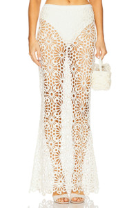 - 90% cotton 10% nylon - Made in China - Hand wash cold - Unlined - Pull-on styling - Lightweight crochet fabric with elastic waistband Item not sold as set - Garment is intentionally sheer, undergarments will show through Please note undergarment not included - Skirt measures approx 43" in length - style runs large, size down - Revolve Style No. NKAM-WQ76 - Manufacturer Style No. ST125SCRP02840