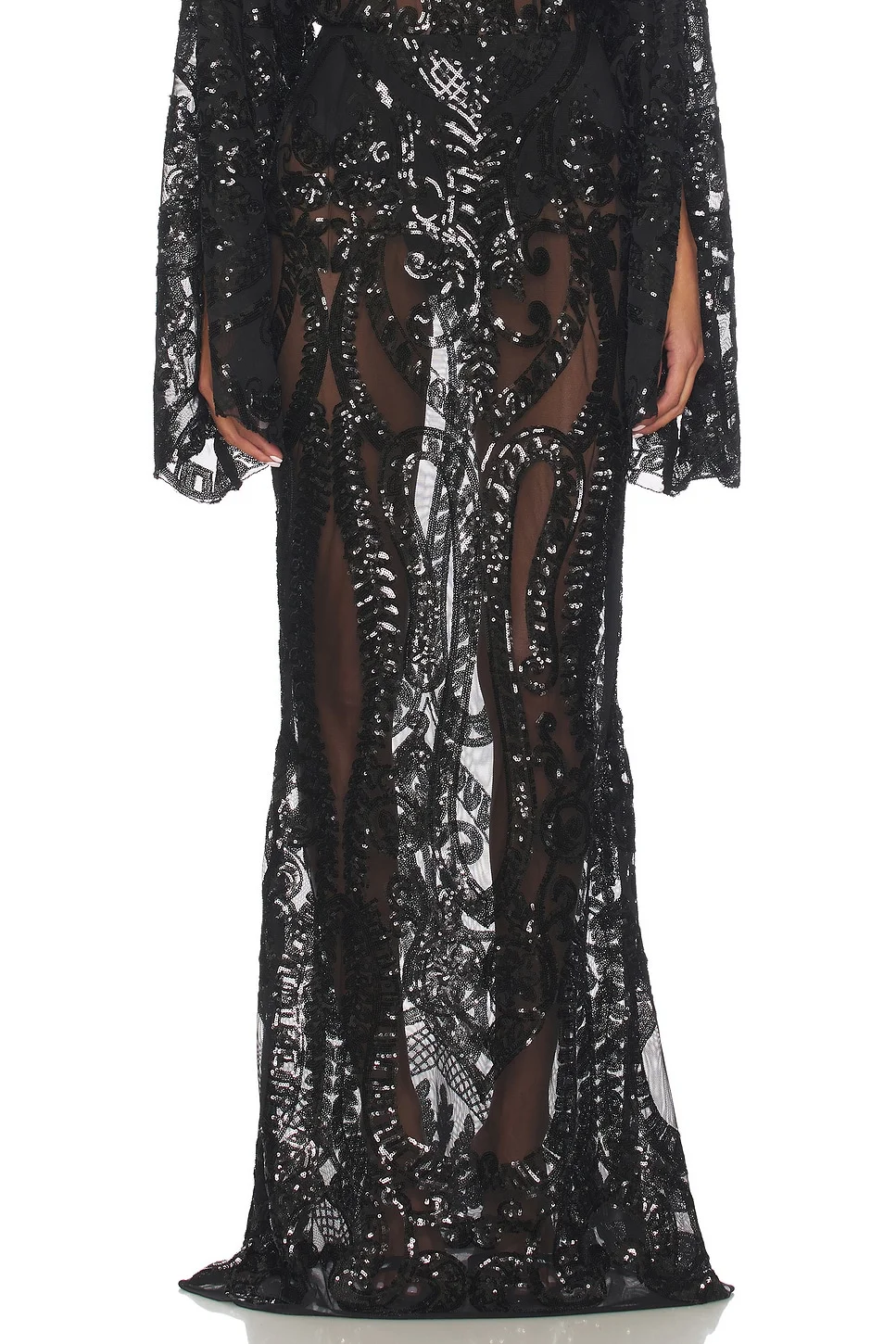 - 94% polyester 6% elastane - Made in China - Hand wash cold - Unlined - Slip-on styling - Lightweight sequin fabric - Elastic waistband - Skirt measures approx 48" in length - style runs large, size down - Revolve Style No. NKAM-WQ98 - Manufacturer Style No. ST425SENP02001