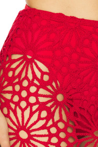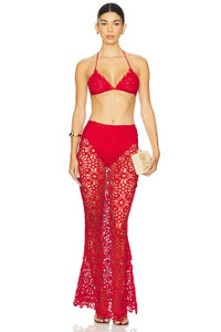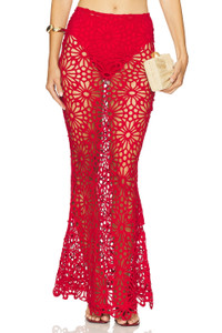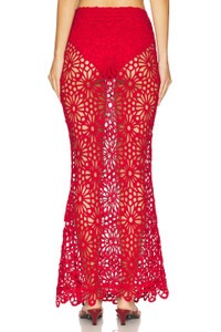- 90% cotton 10% nylon - Hand wash - Unlined - Pull-on styling - Open crochet knit fabric - Item not sold as set - Garment is intentionally sheer, undergarments will show through - Please note undergarment not included - Skirt measures approx 44" in length - style runs large, size down - Revolve Style No. NKAM-WQ84 - Manufacturer Style No. ST225SCRP02946