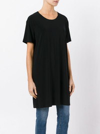 oversized fit T-shirt Black oversized fit T-shirt from Norma Kamali featuring a loose fit, a stretch fit, a round neck, short sleeves and a mid-length. Imported Composition Polyester 95%, Spandex/Elastane 5% SIZE & FIT Model measurements Height 5 ft 10 in(1.78 m) Bust/Chest 33.07 in(84 cm) Hips 35.82 in(91 cm) Waist 26.96 in(68.5 cm) Washing instructions Machine Wash