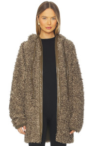 - Self 1: 100% polyester Self 2: 100% polyurethane Self 3 & Lining: 95% polyester 5% elastane - Hand wash - Hidden front zipper closure - Hoodie design with drawstring - Side slip pockets - Shaggy faux fur fabric - style runs large, size down - Revolve Style No. NKAM-WO210 - Manufacturer Style No. ST3254CUR25867