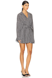 - 100% polyester - Made in China - Machine wash - Unlined - Dual front velcro strip closure and optional waist tie - Side seam pockets - Lightweight jersey fabric Style runs large, size down - style runs large, size down - Revolve Style No. NKAM-WD661 - Manufacturer Style No. ST3243PHA71657