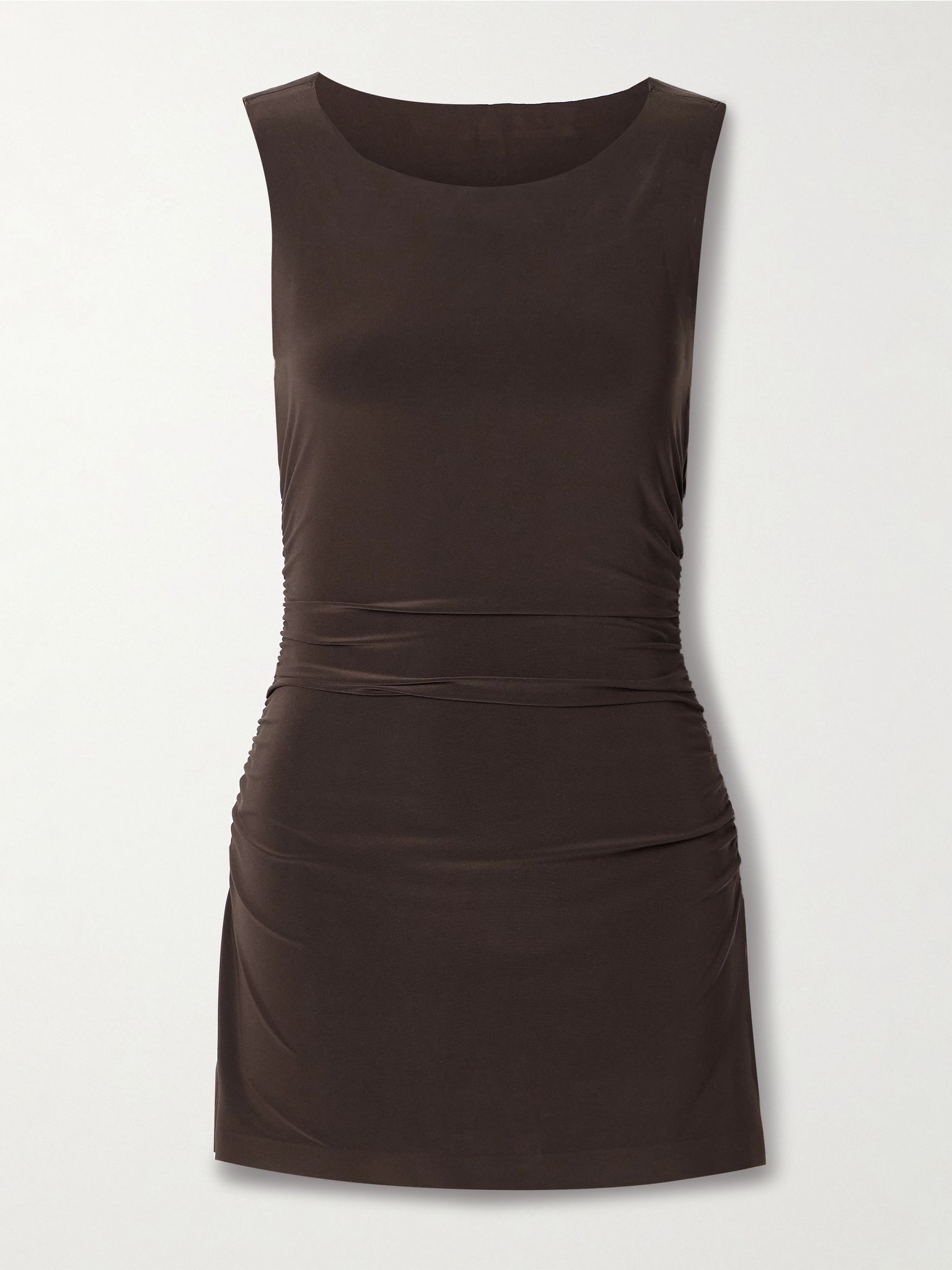 Pickleball ruched stretch-jersey mini dress Chocolate