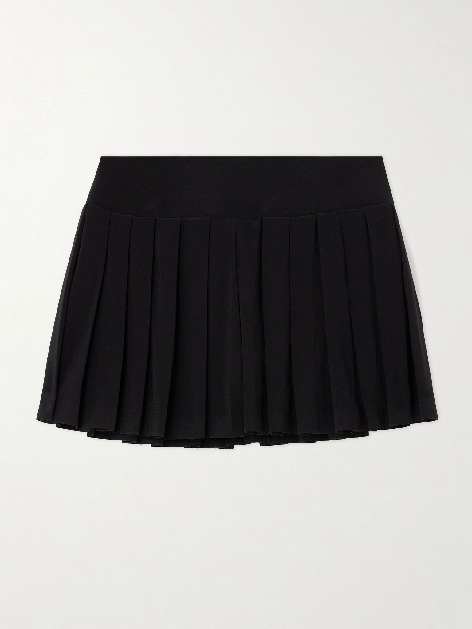 Norma Kamali's 'Pickleball' tennis skirt is made pleated stretch-jersey and has built-in briefs for added coverage. Wear yours on or off the court. Size & Fit - Fits true to size, take your normal size - Mini-length, designed to be worn at the waist - Mid-weight, stretchy fabric - S/M/L sizing Details & Care - Black jersey - Pulls on - 95% polyester, 5% spandex - Machine wash