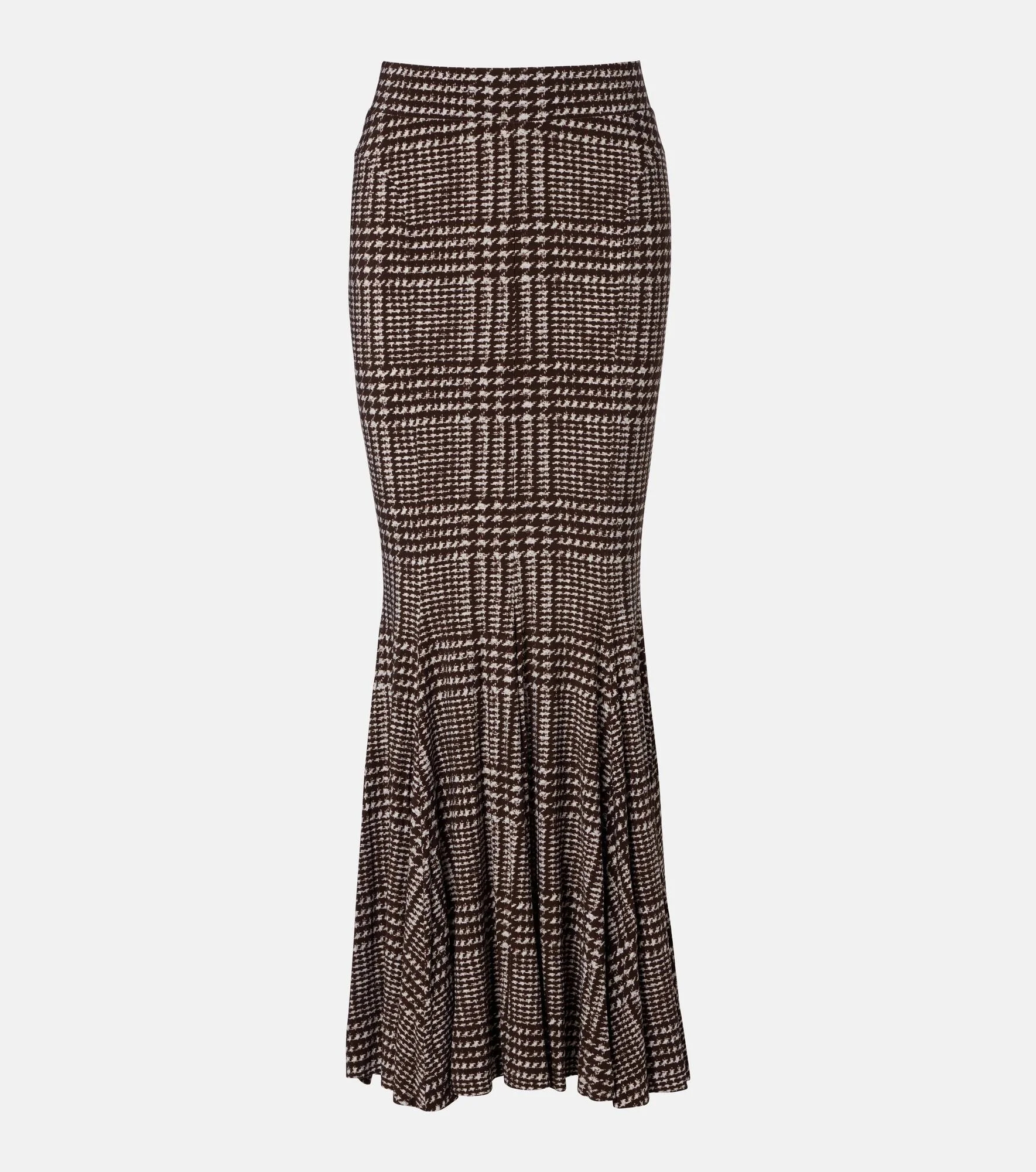 Award-winning designer Norma Kamali's playful approach to design has taken the world by storm since the 1960s. Featuring a classic Prince of Wales check pattern, this maxi skirt comes in a fishtail silhouette. Product Details - Material: 95% polyester, 5% elastane - Care instructions: machine wash cold - Made in China - Designer color name: Chocolate Glenn Plaid - Item color: brown, white - Elasticated waistband - Item number: P01113786 Size & Fit - True to size - Elasticated waist - Stretchy fabric - The model seen in the picture is 178cm-5'10" and wearing a size XS
