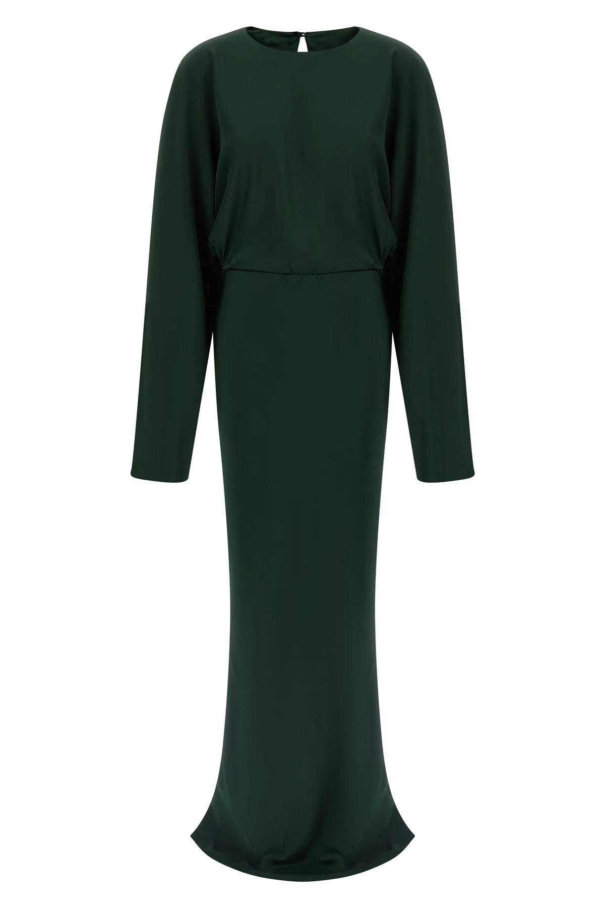 cod. ST4253SAR18869 Long 'Reverse Obie' dress in crepe de chine with crew neck, back button closure, slightly bat long sleeves, slightly flared straight skirt at the bottom. Color: Green Size & Fit: True to size fit. Composition: 100% polyester Made in: China