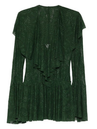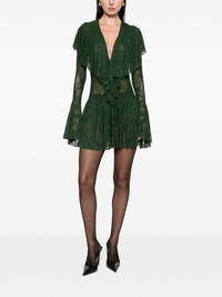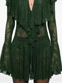 ruffle long-sleeve mini dress Highlights - Green - Deep v-neck - Ruffle detail - Long sleeves - Flared sleeves - Leaf pattern Imported Composition Nylon 81%, Spandex/Elastane 19% SIZE & FIT Model measurements Height 5 ft 10 in(1.78 m) Bust/Chest 33.46 in(85 cm) Hips 36.22 in(92 cm) Waist 23.22 in(59 cm) Washing instructions Machine Wash