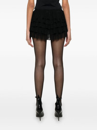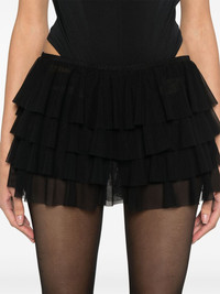 ruffled skorts Highlights - Black - Mesh design - Fully ruffled - Elasticated waistband - Mid-rise - Tiered skirt - Inner shorts - Thigh-length Imported Composition Nylon 82%, Spandex/Elastane 18% SIZE & FIT Model measurements Height 5 ft 10 in(1.77 m) Bust/Chest 28.74 in(73 cm) Hips 35.03 in(89 cm) Waist 23.62 in(60 cm) FittingInformation Designed for a slim fit that sits just away from the body offering a close yet comfortable fit The elasticated waist allows for a comfortable fit Made from a midweight stretch fabric, this piece offers elasticity and flexibility when worn Washing instructions Machine Wash
