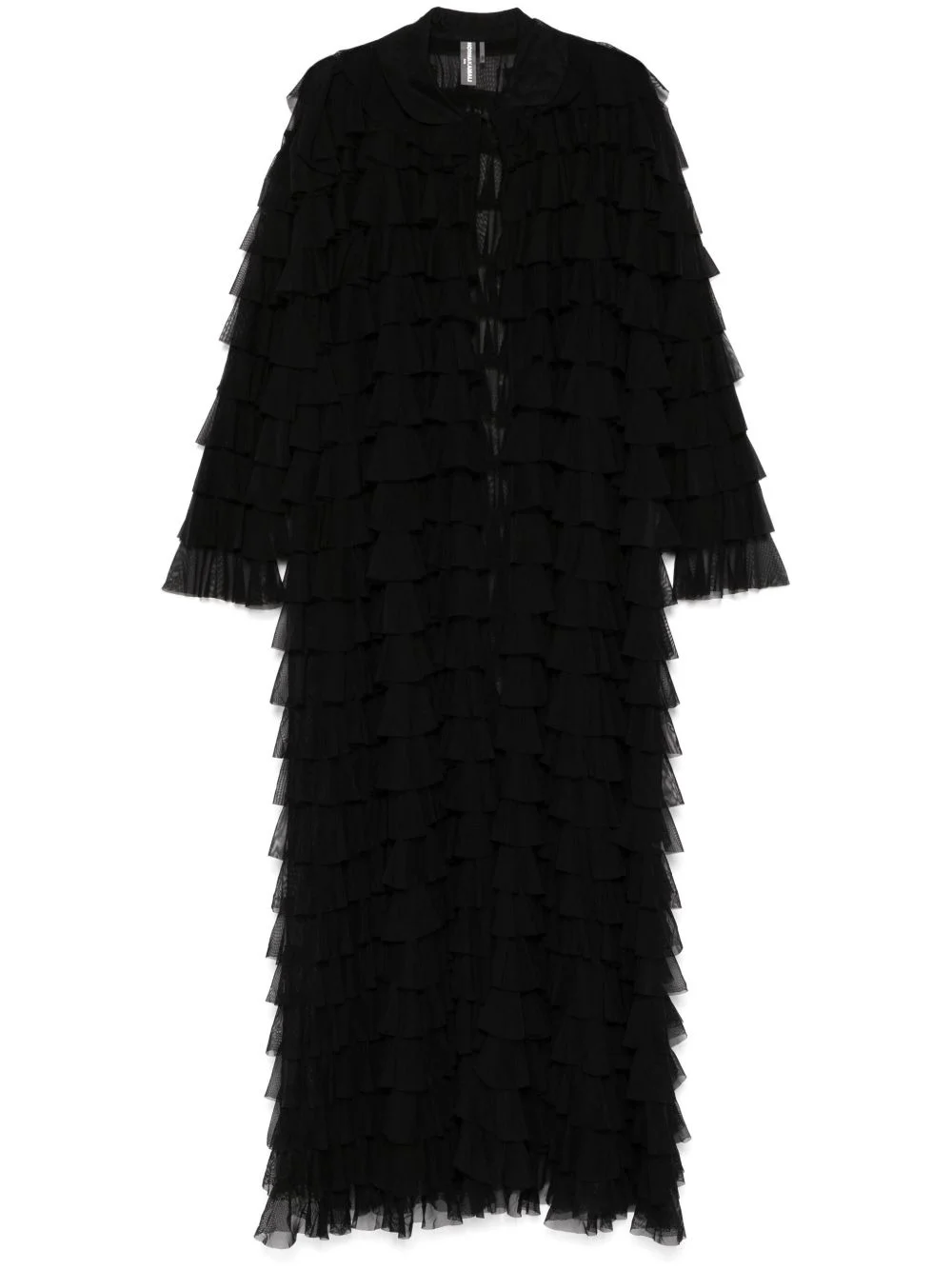 ruffled coat Highlights - Black - Hook fastening - Crew neck - Long sleeves - Tiered design Imported Composition Nylon 82%, Spandex/Elastane 18% SIZE & FIT Model measurements Height 5 ft 11 in(1.8 m) Bust/Chest 32.67 in(83 cm) Hips 36.22 in(92 cm) Waist 24.4 in(62 cm) FittingInformation Designed to be unstructured, offering a loose fit throughout Made from a lightweight stretch fabric, this piece offers elasticity and flexibility when worn Washing instructions Machine Wash