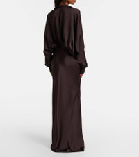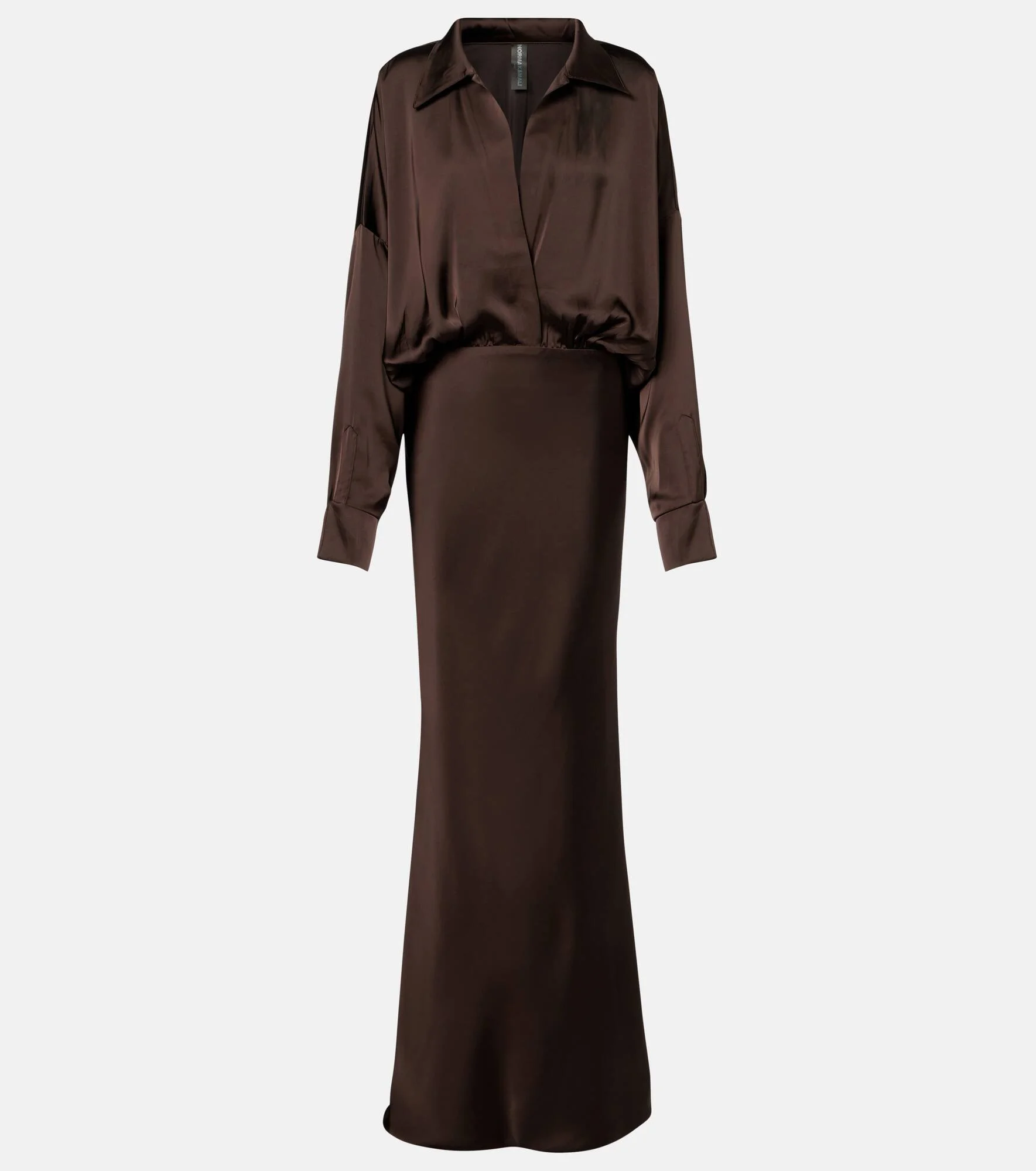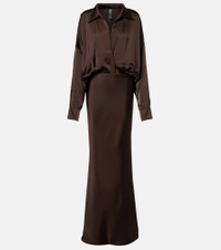 Award-winning designer Norma Kamali's playful approach to design has taken the world by storm since the 1960s. A prime example: this style transforms a shirt-like silhouette into an elegant satin gown. Product Details - Material: 100% polyester - Care instructions: hand wash - Made in China - Designer color name: Chocolate - Item color: brown - Collar: classic (Straight point) - Closure: VELCRO® fastening - Elasticated waistband - Item number: P01098483 Size & Fit - True to size - Dropped shoulders - Loose bodice, fitted skirt - Non-stretchy fabric - The model seen in the picture is 178cm-5'10" and wearing a size XS