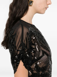sequin-embellished cap-sleeve midi dress Highlights - Black - Sequin embellishment - Cap sleeves - Mid-length - Round neck - Semi-sheer panels Imported Composition Polyester 94%, Elastane 6% SIZE & FIT Model measurements Height 5 ft 11 in(1.8 m) Bust/Chest 32.28 in(82 cm) Hips 36.22 in(92 cm) Waist 25.19 in(64 cm) Washing instructions Read Manufacturer Guidelines