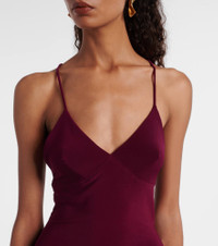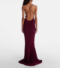 Award-winning designer Norma Kamali’s playful approach to design has captivated the world since the 1960s. This sleeveless gown features shimmering sequins, an alluring V-neckline, crossed back straps, and a graceful fishtail hem. Product Details - Material: 95% polyester, 5% elastane - Care instructions: hand wash cold - Made in China - Designer color name: Plum - Item color: burgundy - Collar: V-neck - Item number: P01112376 Size & Fit - True to size - Low back - Fitted - Stretchy fabric - The model seen in the picture is 178cm-5'10" and wearing a size XS