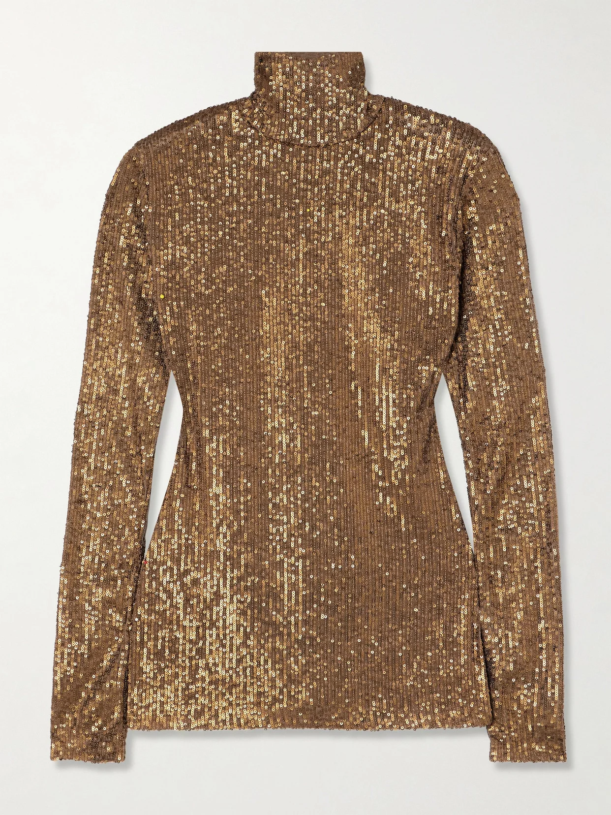 Norma Kamali's turtleneck top is embellished with sequins that glint beautifully as they catch the light. It's cut for a slim fit from four-way stretch-mesh and has thumbholes at the cuffs. Wear yours with the matching pants.