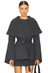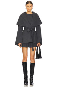 - Self: 95% cotton 5% spandex Filler: 100% polyester - Made in China - Hand wash - Open front with waist-tie closure - style runs large, size down - Revolve Style No. NKAM-WO193 - Manufacturer Style No. ST3244TE008184