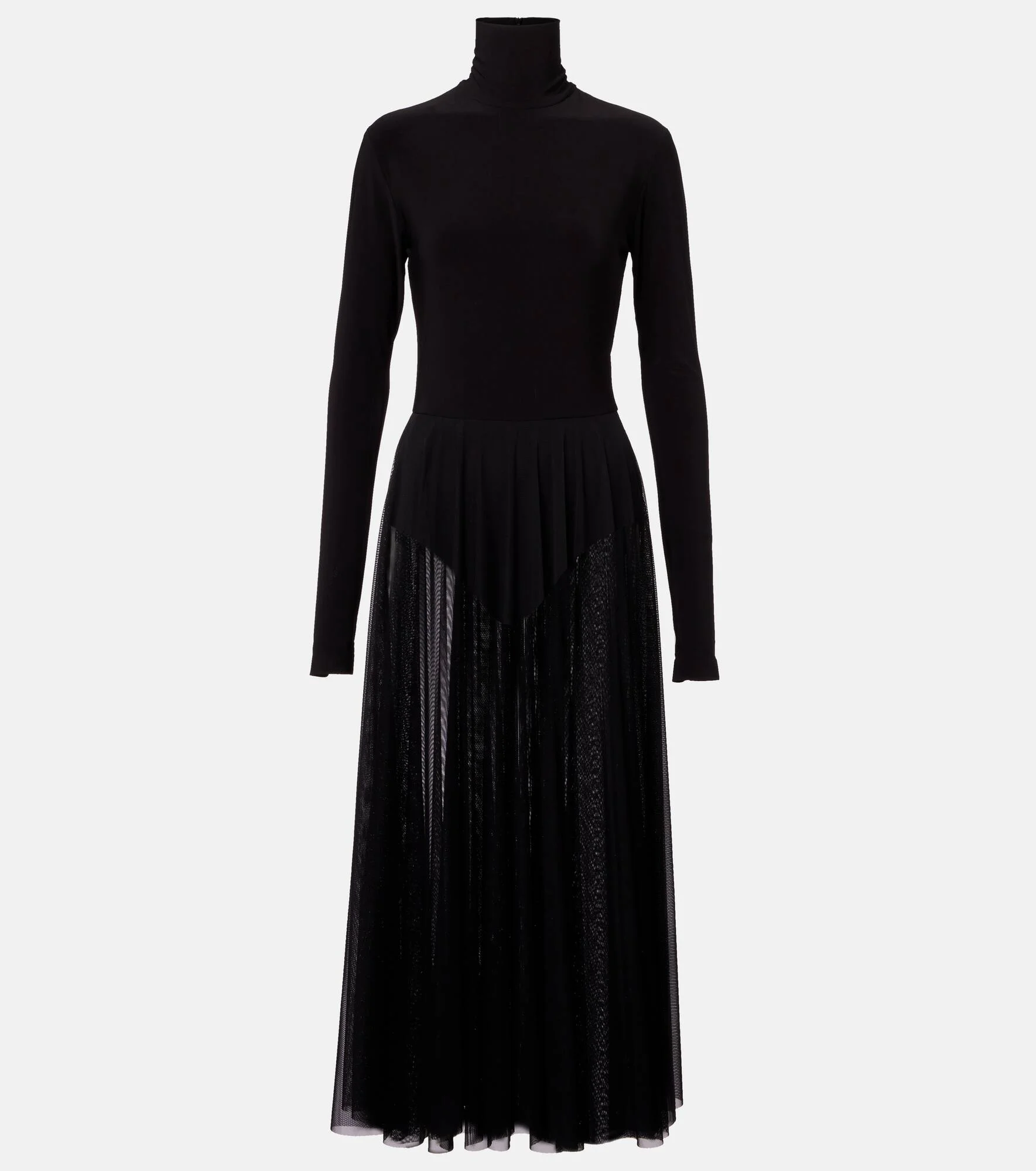 Sheer jersey and mesh midi dress